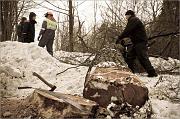 Emapuu langetamine ja halulaeva projekti esitlus Kärdlas 27.02.2010. Foto Toomas Kokovkin