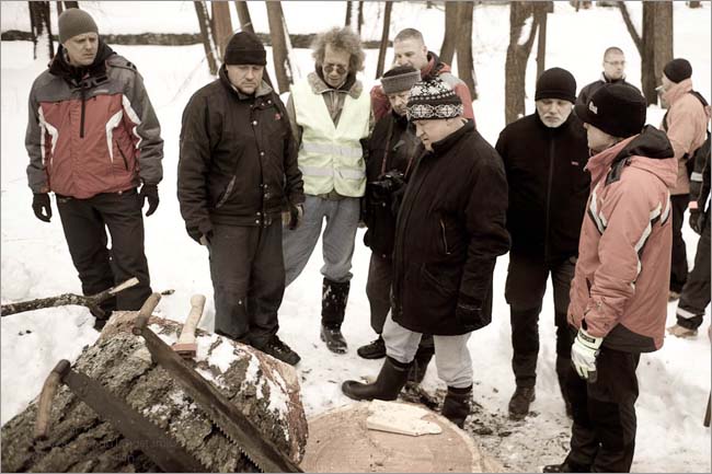 Halulaeva emapuu langetamine Kärdlas 27.02.2010. Foto Toomas Kokovkin